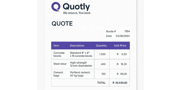 Upload your BOQ or materials list directly through our submissions form or email it to sourcing@quotly.co.za